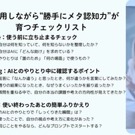 AIを最強の相棒にする「メタ認知」術|ありきたりな回答しか返ってこない…は今日で終わり【実践チェックリスト付】 …自分自身を深く理解し、使いこなす力、いわゆる「メタ認知」する力にある可能性が高そうです。 AI時代の「メタ認知」活用術現在、展開されているAIはどれもチ… (出典:ライフハッカー・ジャパン) |